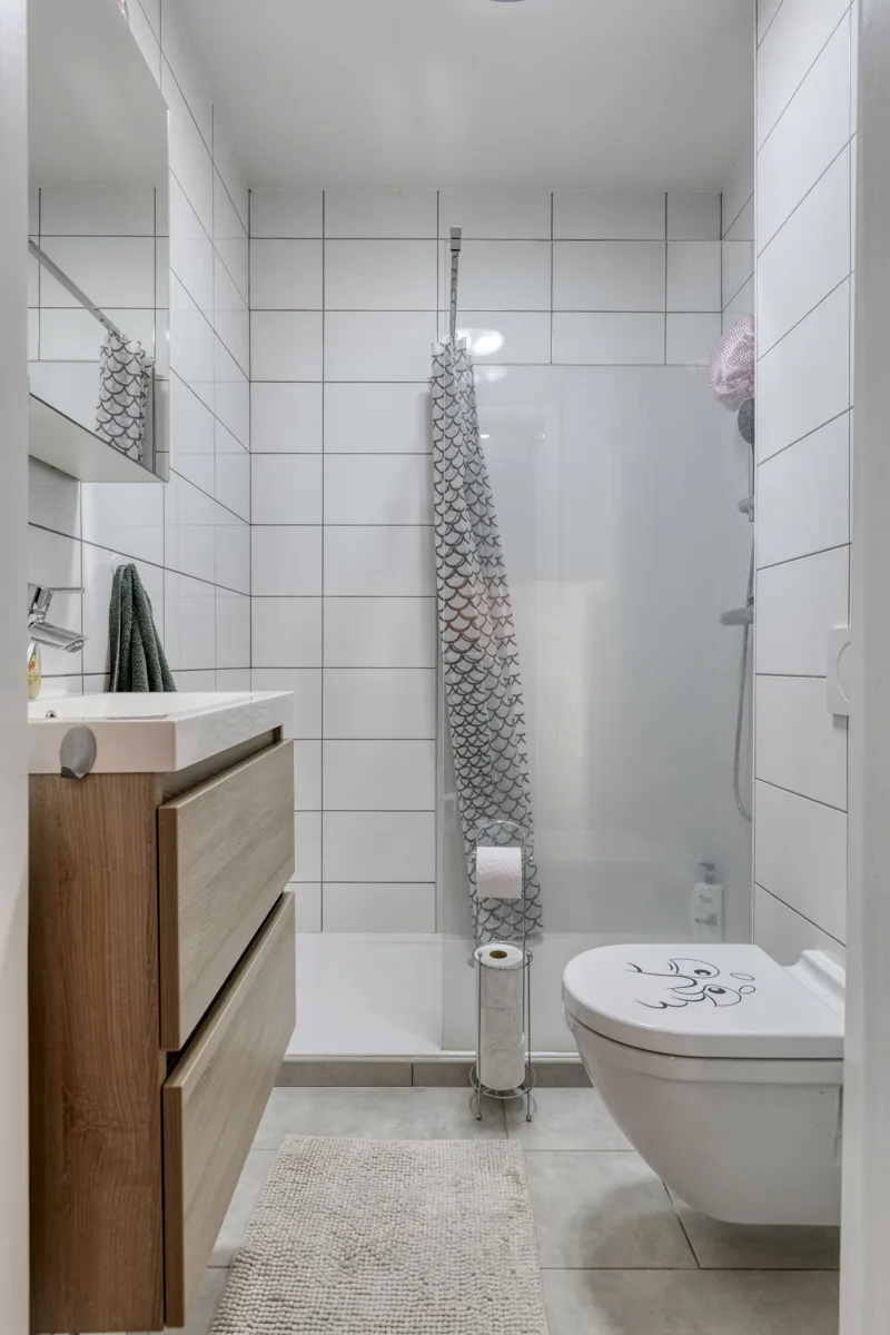 Vanuit de hal heeft u toegang tot de overige vertrekken. De eerste slaapkamer biedt met haar oppervlakte van ca. 16 m² alle comfort. De tweede kamer (ca. 9 m²) kan perfect dienen als extra slaapkamer of bureauruimte. De badkamer is modern ingericht en voorzien van een inloopdouche, wastafel en toilet.
