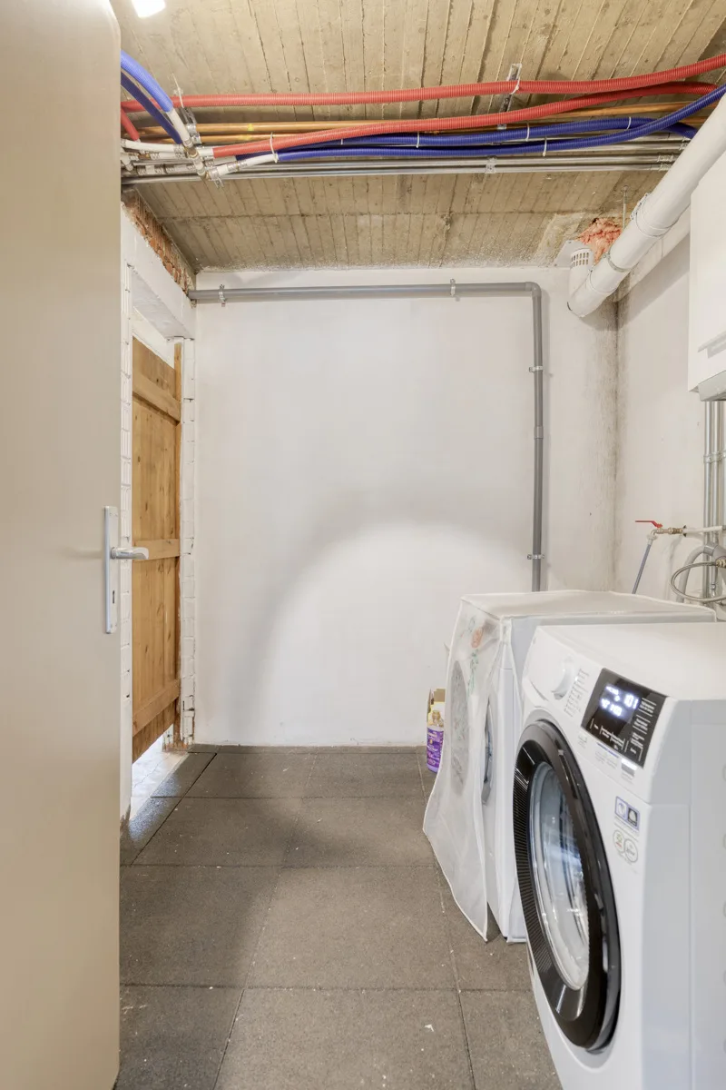 Op de benedenverdieping van het appartementsgebouw bevindt zich een gemeenschappelijke berging met mogelijkheid voor aansluiting van een wasmachine en droogkast.
