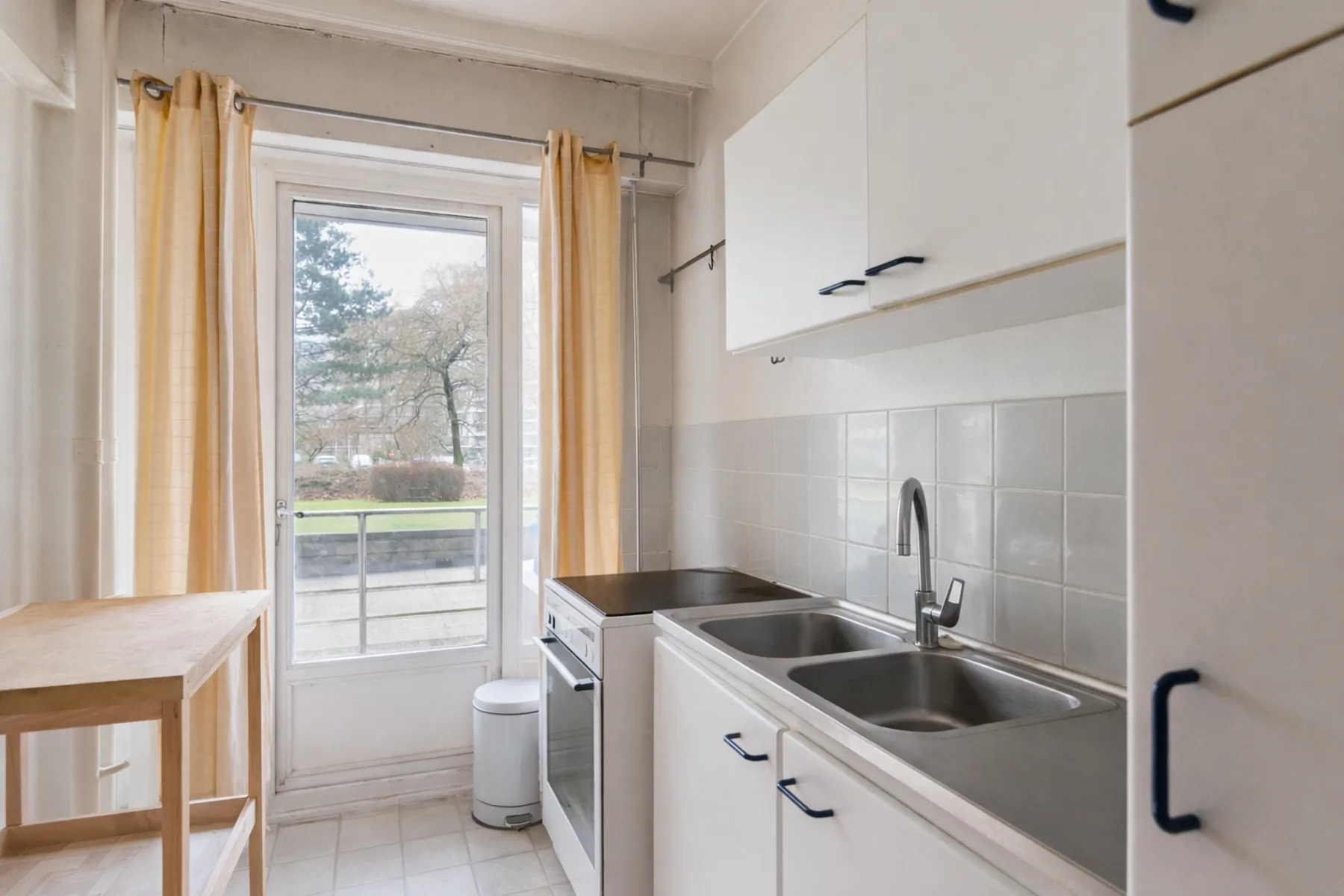 Het appartement beschikt over een volwaardige slaapkamer met zicht op het groen. De badkamer is voorzien van een bad, een lavabo en aansluiting voor een wasmachine.