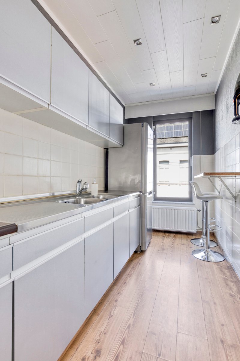 Dit goed onderhouden appartement beschikt over een ruime leefruimte met een grote raampartij, wat zorgt voor veel natuurlijk licht. Aansluitend bevindt zich de keuken, uitgerust met een fornuis (4-pits en oven), dampkap, inox spoelbak en een ijskast. Centraal in het appartement is de inkomhal met een vestiairekast/bergkast, een gasten toilet en een recente badkamer, voorzien van een douche, lavabo met meubel, kolomkast, handdoekradiator en aansluitingen voor een wasmachine en droogkast. Verder zijn er twee slaapkamers: één ruime met een hoger plafond en een tweede, ideaal als kinderkamer of bureau.