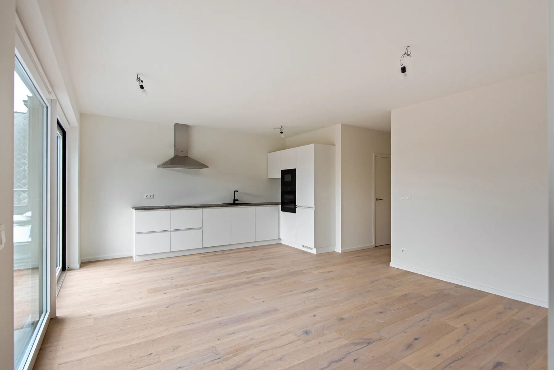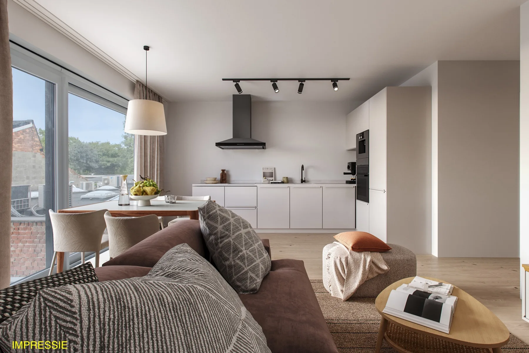 Lichtrijke leefruimte met moderne afwerking.