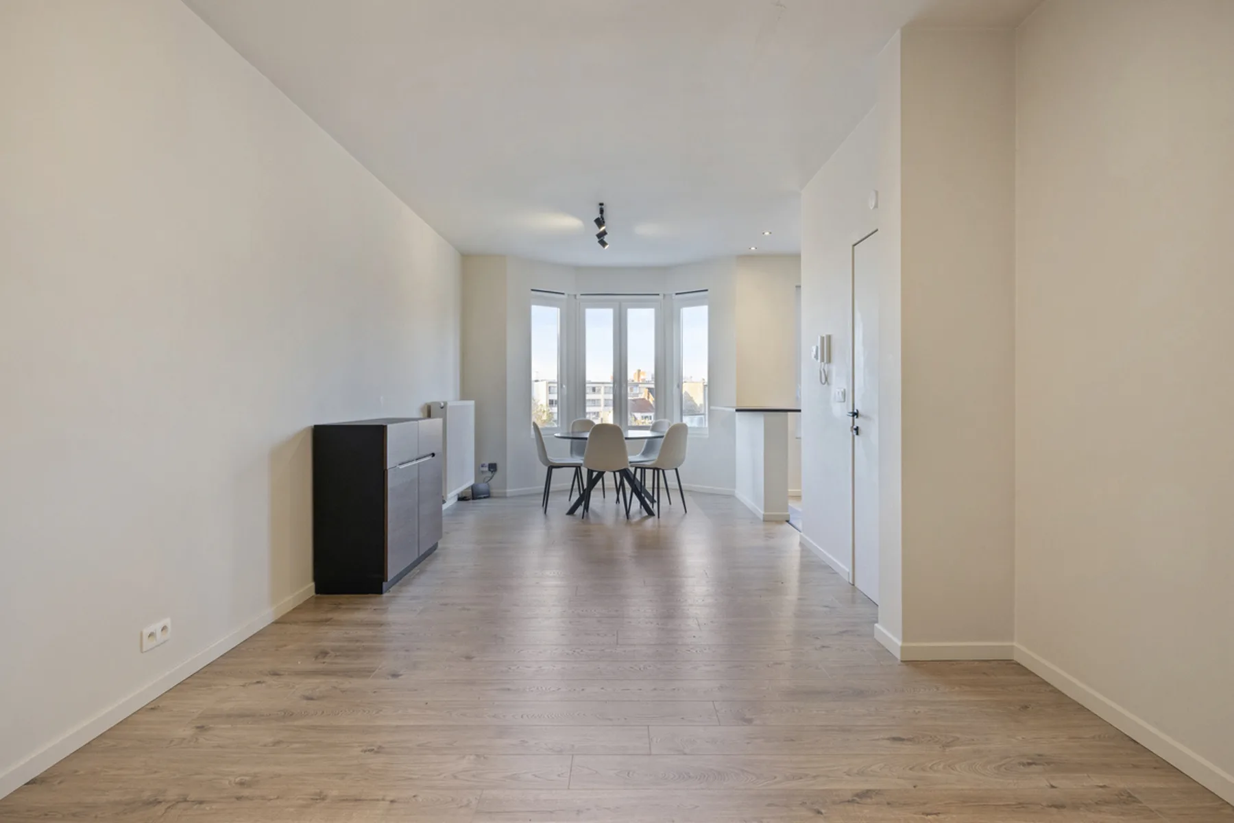 Het volledige gebouw werd in 2023 vernieuwd en afgewerkt met duurzame en hoogwaardige materialen, waaronder nieuwe ramen, een energie-efficiënte verwarmingsinstallatie en een moderne vloerafwerking doorheen het hele appartement.