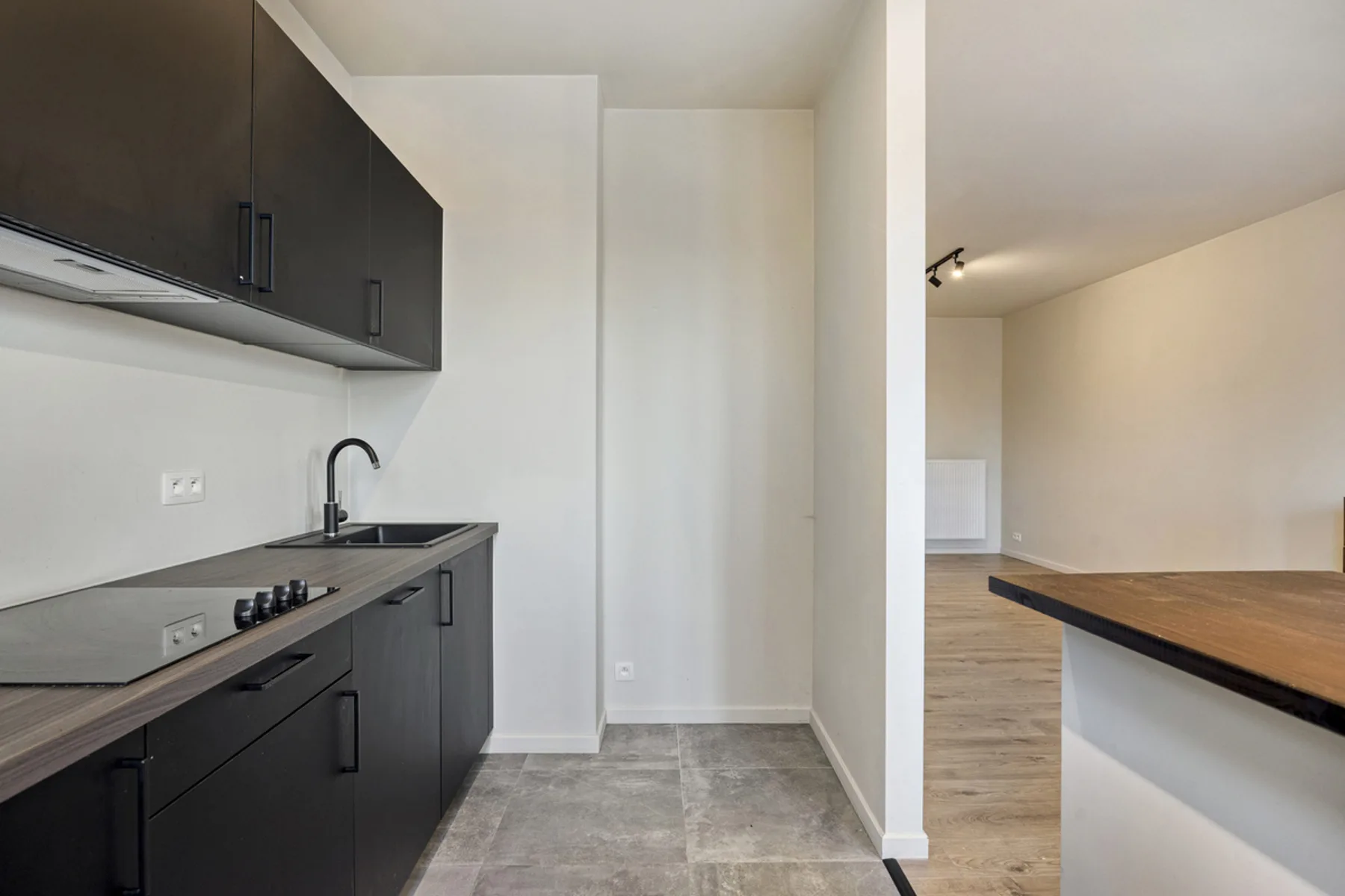 Gelegen op de derde verdieping van een kleinschalig en volledig gerenoveerd gebouw. U komt binnen in de stijlvolle en lichtrijke leefruimte, voorzien van hoge plafonds die zorgen voor een uitzonderlijk ruimtegevoel. Aansluitend bevindt zich de volledig uitgeruste open keuken met kookeiland. De keuken werd op maat gemaakt en is uitgerust met onder andere een inductievuur, combi-oven, vaatwasser en voldoende opbergruimte.